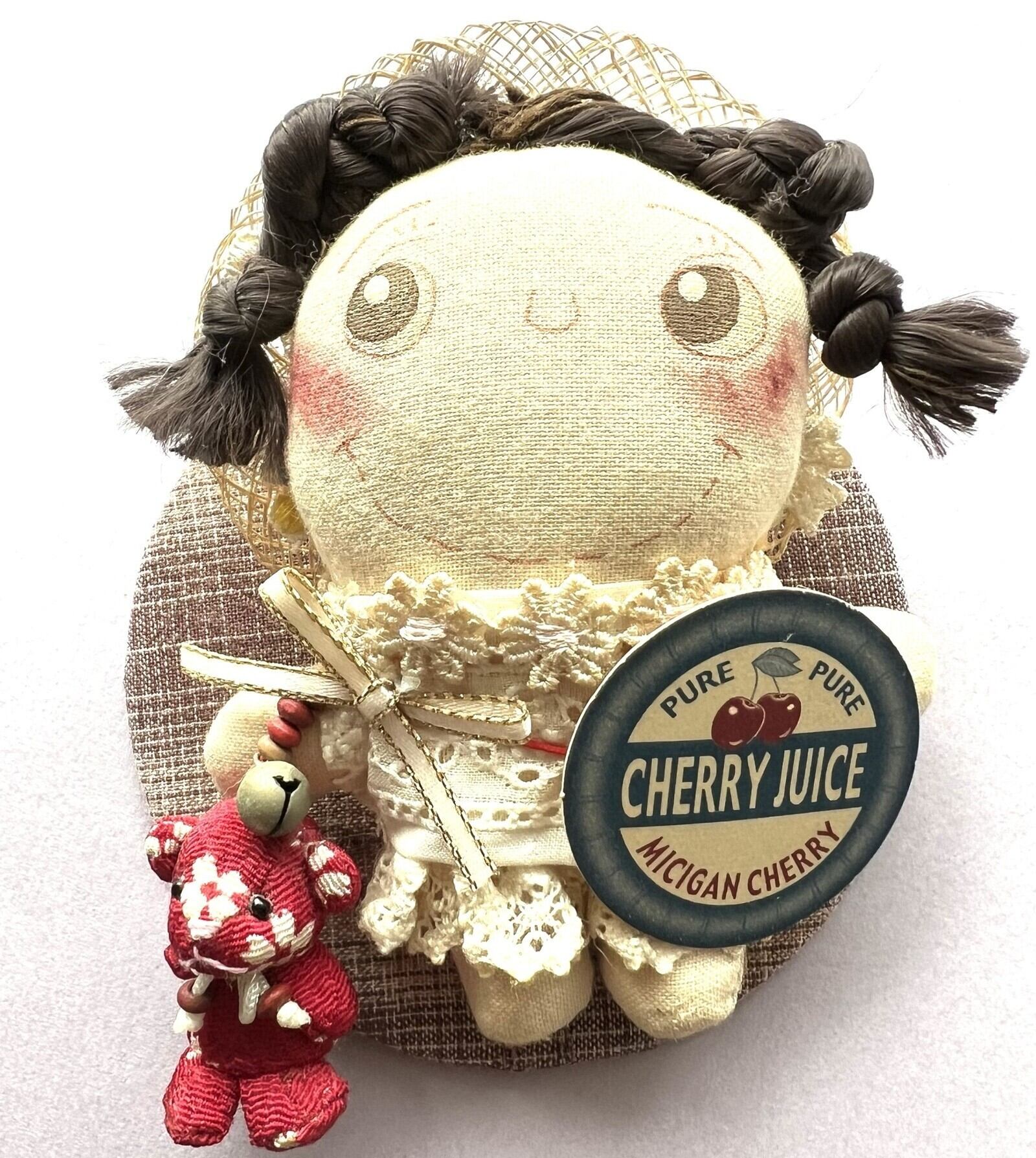赤色のクマさんがお友達の女の子の人形が、あなたの胸元にぴったりの100mmサイズの缶バッジになりました!