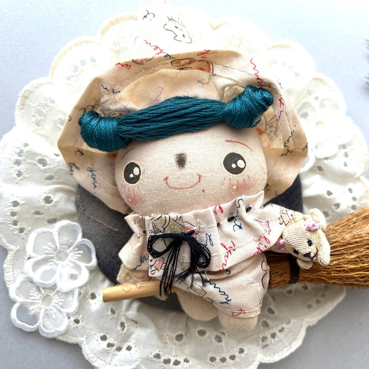 ホウキに乗った白い魔法使いの女の子の人形が、あなたの胸元にぴったりの100mmサイズの缶バッジになりました!