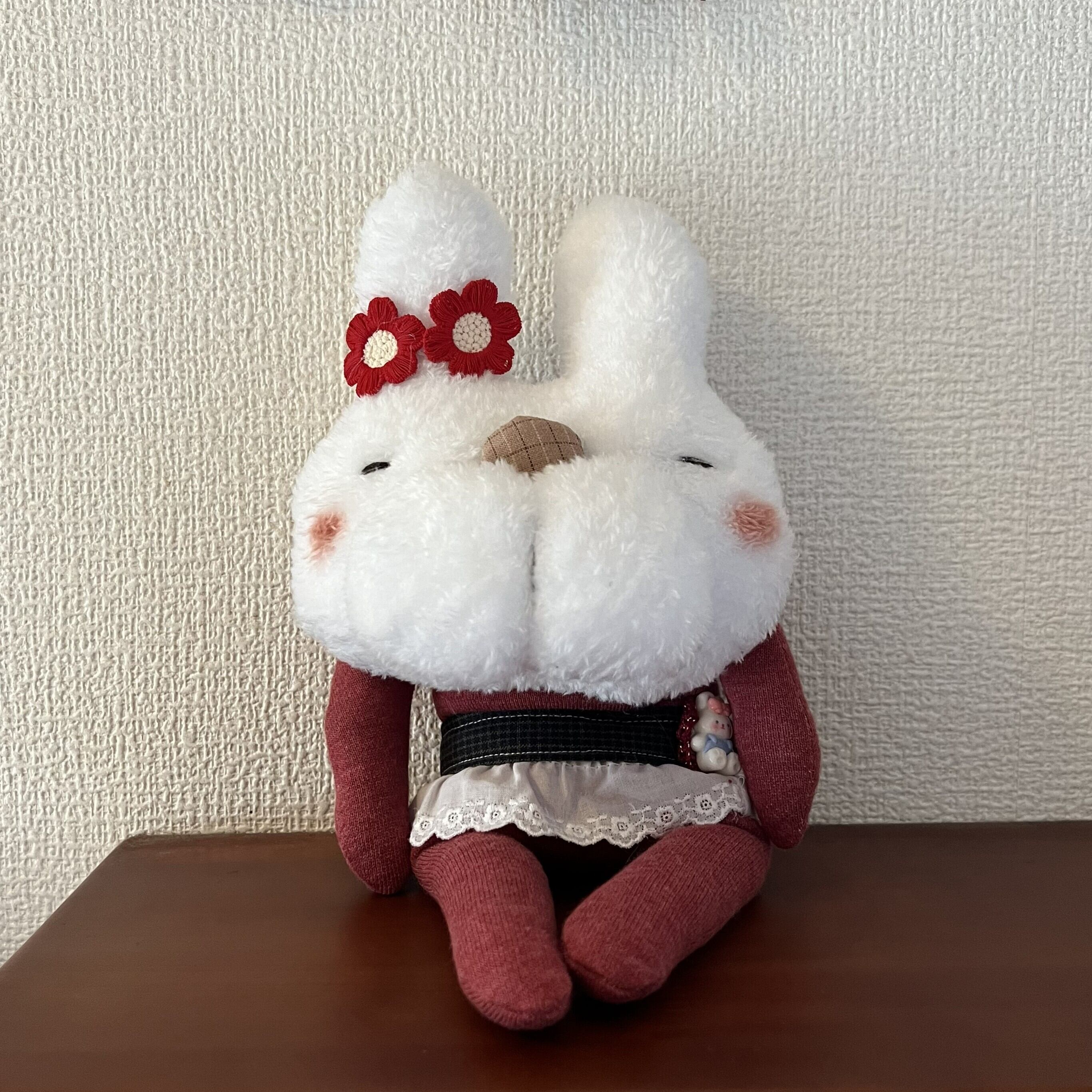 商品名:yumonmyu 赤いリボンのニンマリ白うさぎさん