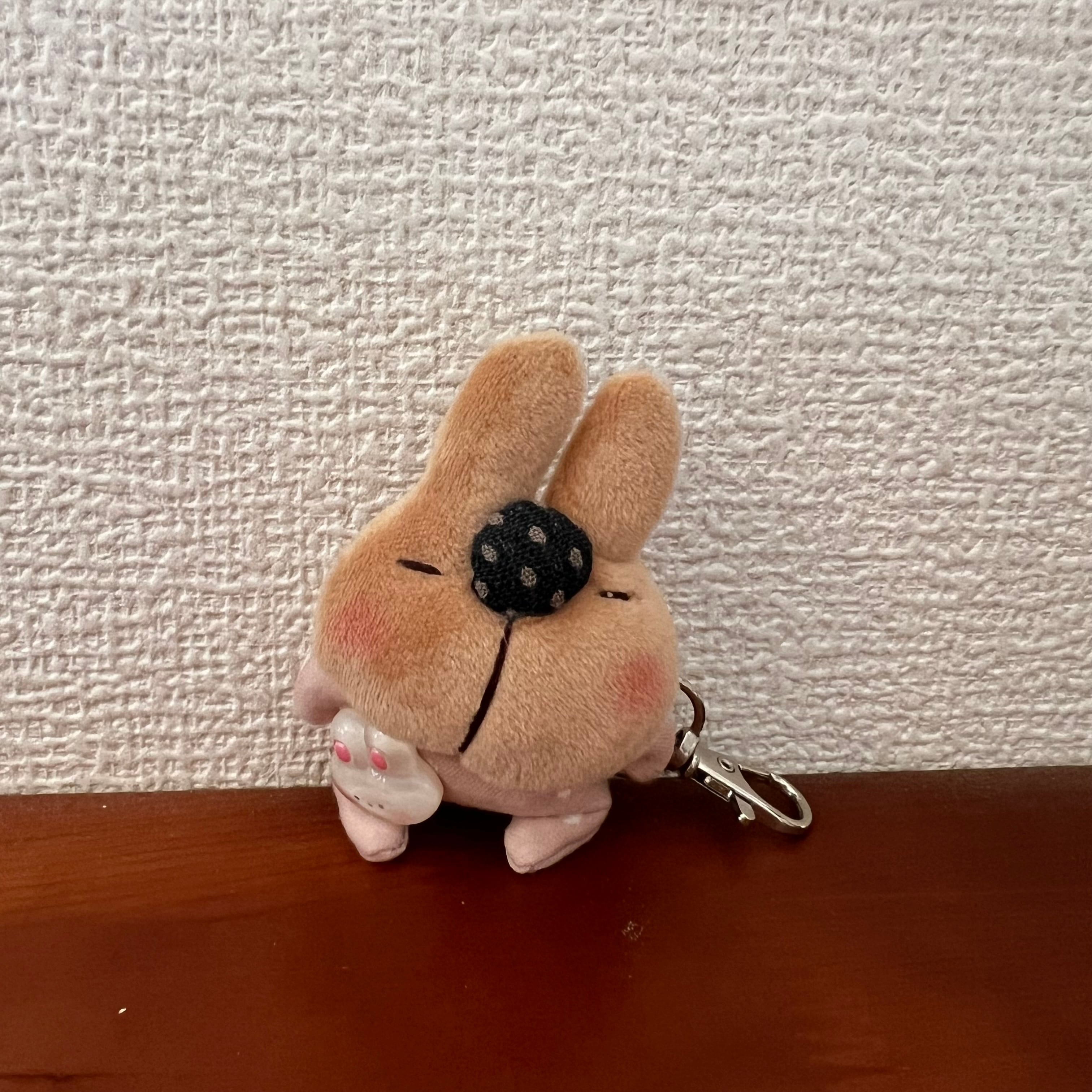 ぬいぐるみとしてもキーホルダーとしても楽しめるmini^2monmyuシリーズから、表情が愛らしいアプリコット色のうさぎさんが仲間入りです。